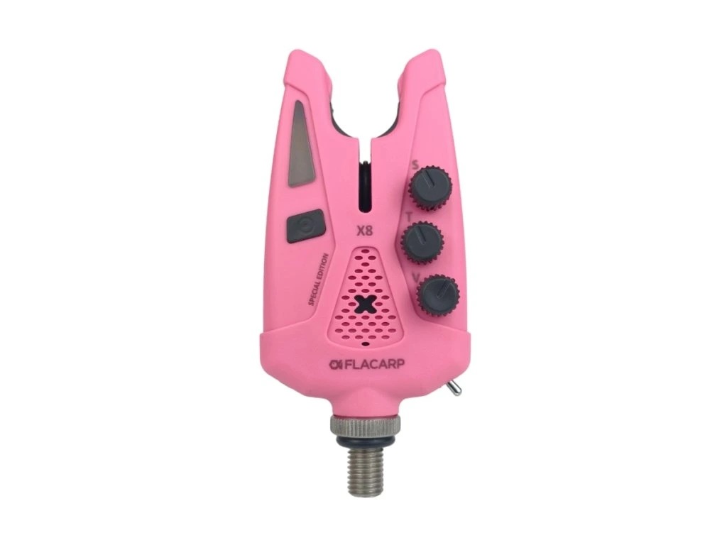 České signalizátory záběru FLACARP X8 vycházejí z oblíbeného modelu X7 a přidávají množství užitečných funkcí. Kromě osvědčeného designu, velmi vysoké mechanické odolnosti, precizního snímače odvíjení vlasce s potahem již od 1,5mm v obou směrech a v neposlední řadě napájení běžnými tužkovými články AAA, byly přidány nové funkce: režim potlačení falešných poplachů (např. při rybolovu v nepříznivém počasí nebo ze člunu), noční poziční světlo na swingeru, širší rozsah regulace délky potahu vlasce od 1,5mm až do 30cm, vylepšený zvuk padáku pro jednoznačné rozlišení směru odvíjení vlasce, širší rozsah nastavení barev LED a další vylepšení.
