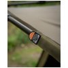 • Khaki látka se zeleným rámem a dva pásky na uchycení prutů v přední části přístřešku.