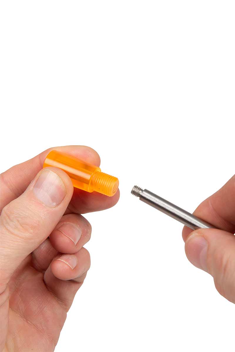 • Průsvitný oranžový vršek s drážkou pro 25mm Izotop, gumová zátka spolehlivě drží na místě.