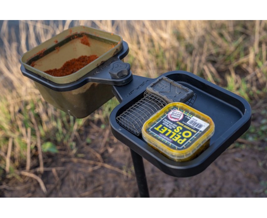 Super kompaktní waiter tray, který se složí tak, aby se vešel do kapsy rybářské tašky. Na rozdíl od jiných podobných výrobků, které jsou velké a neskladné, tento model nabízí praktický tác s obručovým držákem, navrženým pro použití s 2 nebo 3 pintovými krabičkami na nástrahy. Ideální při upevnění na vidličku, trojnožku nebo příslušenství k židli.