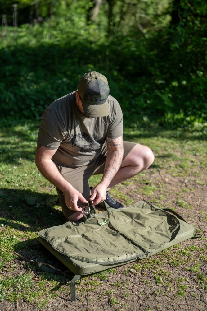 Praktický set určený pro mobilní rybáře. Vyrobený z lehké a odolné tkaniny 150DPU Supa Lite Flex, nabízí pohodlný, silně polstrovaný matraci na skládací podložce, kterou lze snadno připnout ke všem batohům a ruckbagům Korum pomocí dvou D oček. Na zadní straně podložky je umístěn vážicí sak pro trofejní ryby, uložený v malé kapsičce. Tato kapsička je navíc uzpůsobena i pro uložení vah Korum. Podložka se bezpečně sepne a je vybavena integrovaným madlem pro snadné přenášení.