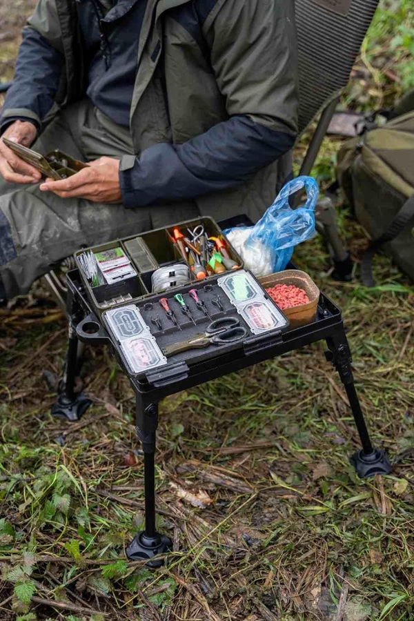 Tento praktický přenosný boční stolek je skvělým pomocníkem u vody a pomůže vám udržet vybavení přehledně uspořádané při různých stylech rybaření. Lze jej využít jako boční stolek k sedačce, bivakovací stolek, bait waiter nebo trotting tray. Nabízí stabilní a spolehlivou plochu pro uložení nástrah a příslušenství.