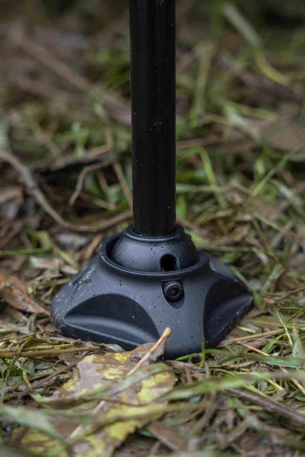 Stolek je vybaven teleskopickými nohami s cam-lock zámky, které umožňují snadné nastavení výšky podle terénu. Stabilitu na měkkém podkladu zajišťují široké patky do bláta (mudfeet).