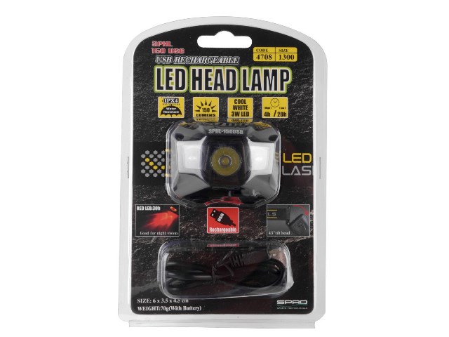 SPRO Led Head Lamp SPHL150 USB 3W CREE LED (Made in USA) Tělo odolné proti vodní spršce Nabíjecí USB kabelem (v balení) 1200 mAh Lithium…